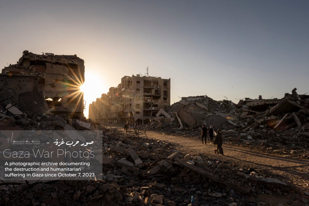 The album “Gaza City in Ruins” portrays how the features of Gaza transformed from a city once pulsing with beauty into a scene overwhelmed by destruction and rubble. Here we see buildings that once stood tall reduced to ruins, and streets whose landmarks have completely changed. A city that was once full of life now reflects a harsh reality of devastation that has touched every corner.