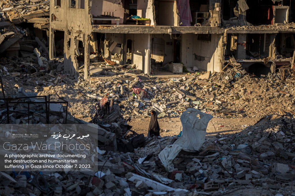 The album “Gaza City in Ruins” portrays how the features of Gaza transformed from a city once pulsing with beauty into a scene overwhelmed by destruction and rubble. Here we see buildings that once stood tall reduced to ruins, and streets whose landmarks have completely changed. A city that was once full of life now reflects a harsh reality of devastation that has touched every corner.