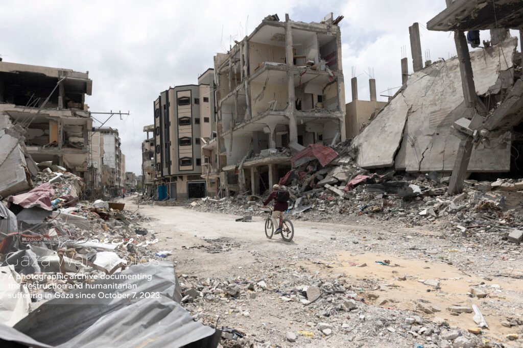The album “Gaza City in Ruins” portrays how the features of Gaza transformed from a city once pulsing with beauty into a scene overwhelmed by destruction and rubble. Here we see buildings that once stood tall reduced to ruins, and streets whose landmarks have completely changed. A city that was once full of life now reflects a harsh reality of devastation that has touched every corner.