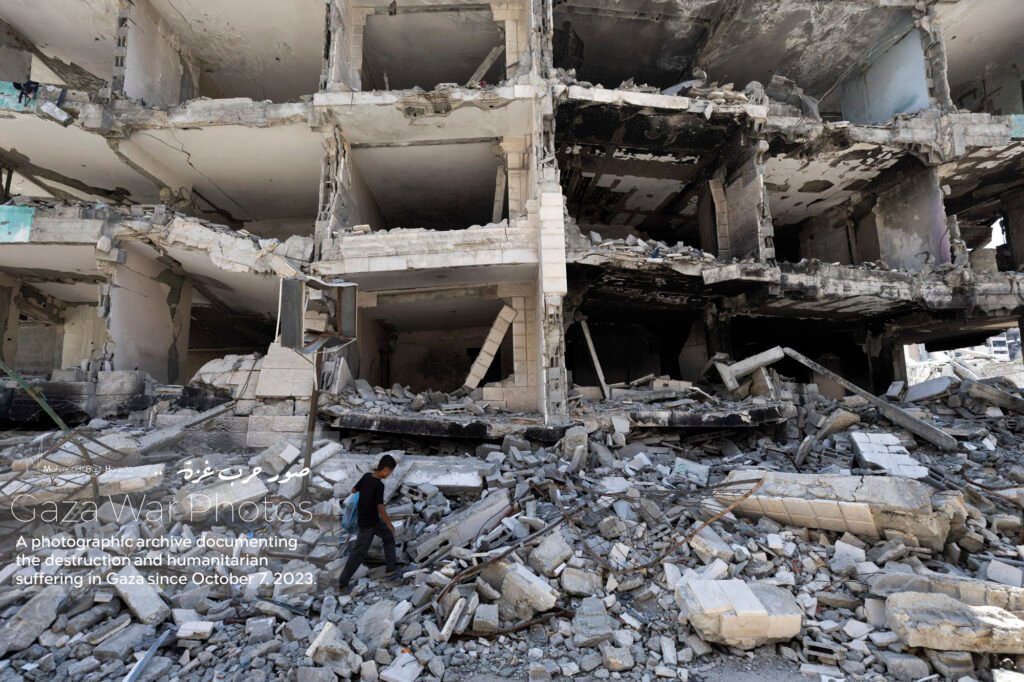 The album “Gaza City in Ruins” portrays how the features of Gaza transformed from a city once pulsing with beauty into a scene overwhelmed by destruction and rubble. Here we see buildings that once stood tall reduced to ruins, and streets whose landmarks have completely changed. A city that was once full of life now reflects a harsh reality of devastation that has touched every corner.