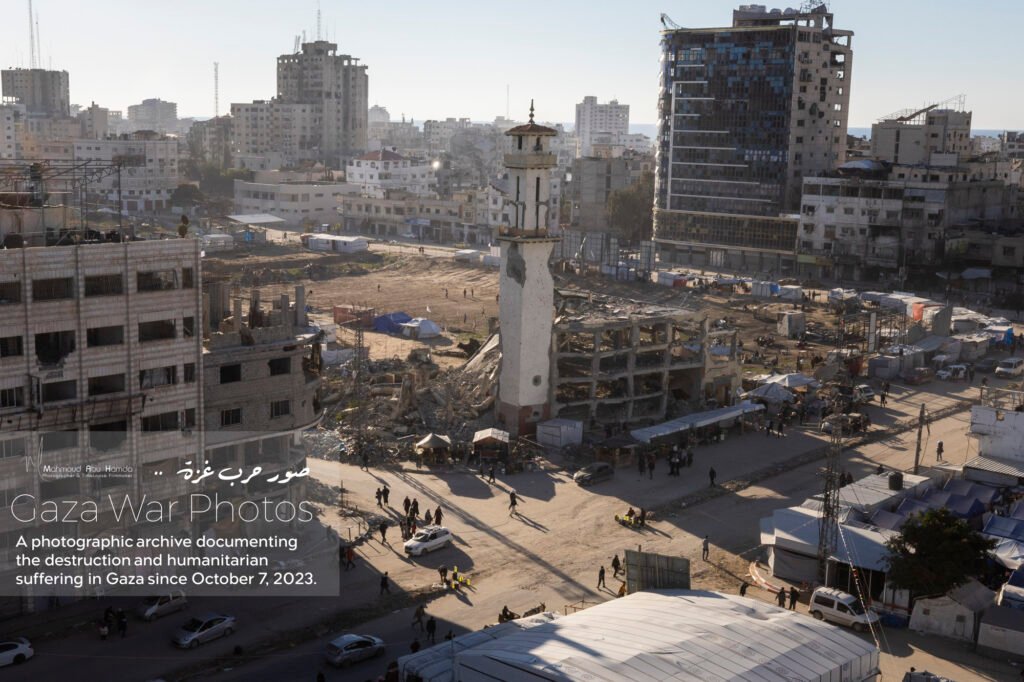 The album “Gaza City in Ruins” portrays how the features of Gaza transformed from a city once pulsing with beauty into a scene overwhelmed by destruction and rubble. Here we see buildings that once stood tall reduced to ruins, and streets whose landmarks have completely changed. A city that was once full of life now reflects a harsh reality of devastation that has touched every corner.