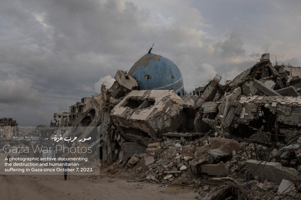 The album “Gaza City in Ruins” portrays how the features of Gaza transformed from a city once pulsing with beauty into a scene overwhelmed by destruction and rubble. Here we see buildings that once stood tall reduced to ruins, and streets whose landmarks have completely changed. A city that was once full of life now reflects a harsh reality of devastation that has touched every corner.