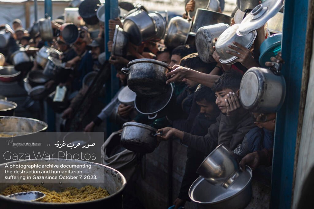 In the album “Struggle for Food”, we paint an image of the suffering of women and children standing in long lines to obtain food. Here, in the tents or displacement schools, the very act of preparing meals becomes a struggle in itself due to the lack of cooking gas and the difficulty of securing essentials.