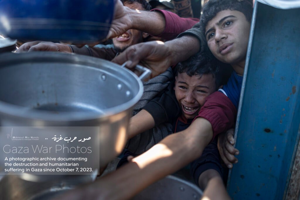 In the album “Struggle for Food”, we paint an image of the suffering of women and children standing in long lines to obtain food. Here, in the tents or displacement schools, the very act of preparing meals becomes a struggle in itself due to the lack of cooking gas and the difficulty of securing essentials.
