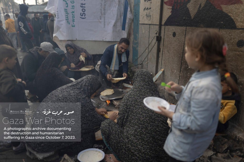 In the album “Struggle for Food”, we paint an image of the suffering of women and children standing in long lines to obtain food. Here, in the tents or displacement schools, the very act of preparing meals becomes a struggle in itself due to the lack of cooking gas and the difficulty of securing essentials.