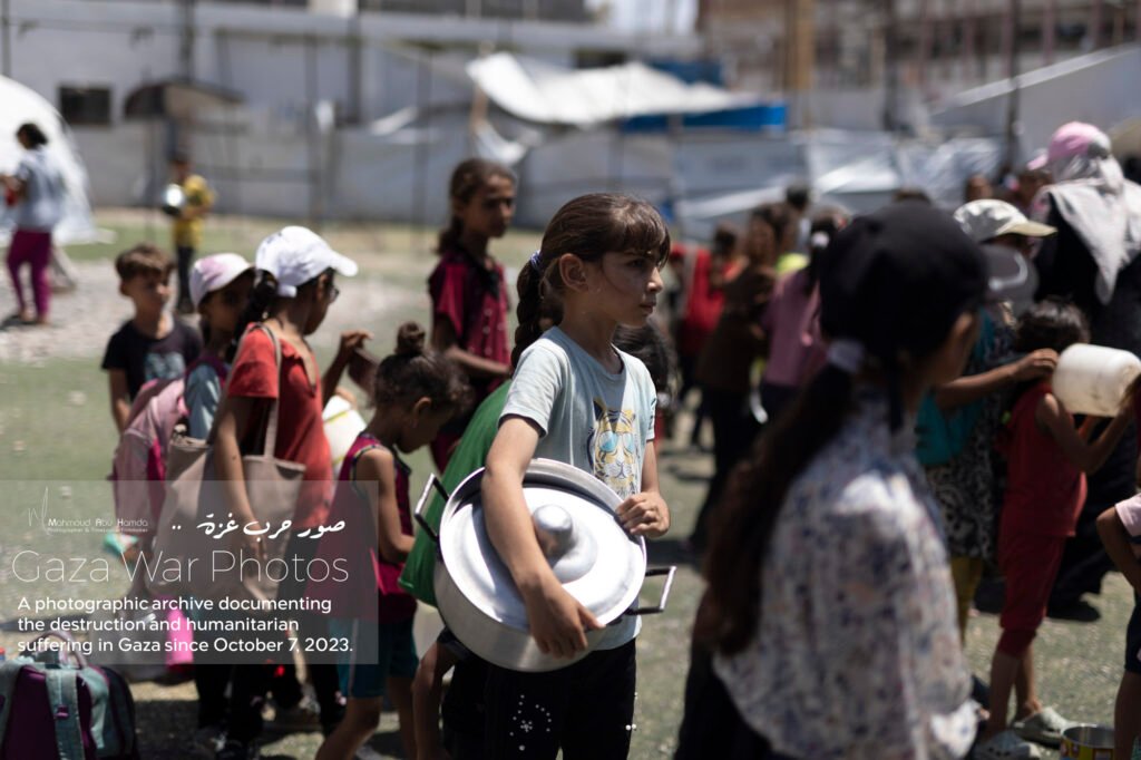 In the album “Struggle for Food”, we paint an image of the suffering of women and children standing in long lines to obtain food. Here, in the tents or displacement schools, the very act of preparing meals becomes a struggle in itself due to the lack of cooking gas and the difficulty of securing essentials.