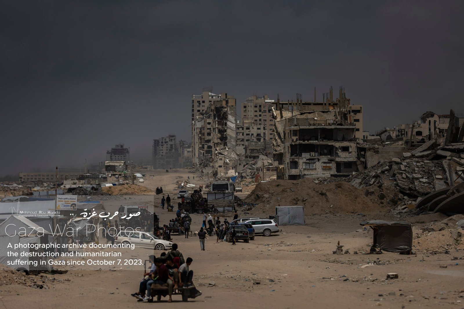 The album “Gaza City in Ruins” portrays how the features of Gaza transformed from a city once pulsing with beauty into a scene overwhelmed by destruction and rubble. Here we see buildings that once stood tall reduced to ruins, and streets whose landmarks have completely changed. A city that was once full of life now reflects a harsh reality of devastation that has touched every corner.